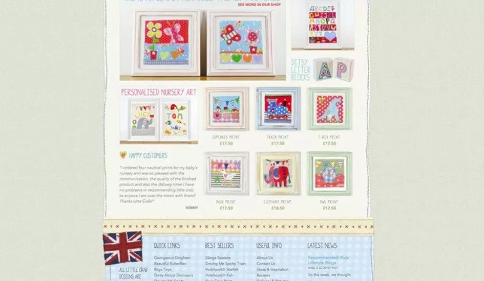 Little Crab Designs specialises in nursery wall art and wanted a very bespoke website that reflected its branding. With Emma Simpson on board as iPages' in-house designer we were able to create a fabulous website that is rich in functionality that looks gorgeous.